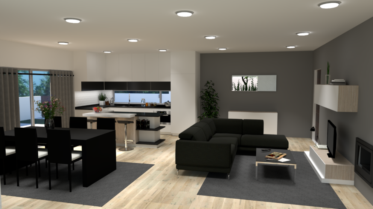 Cozinha e sala em openspace